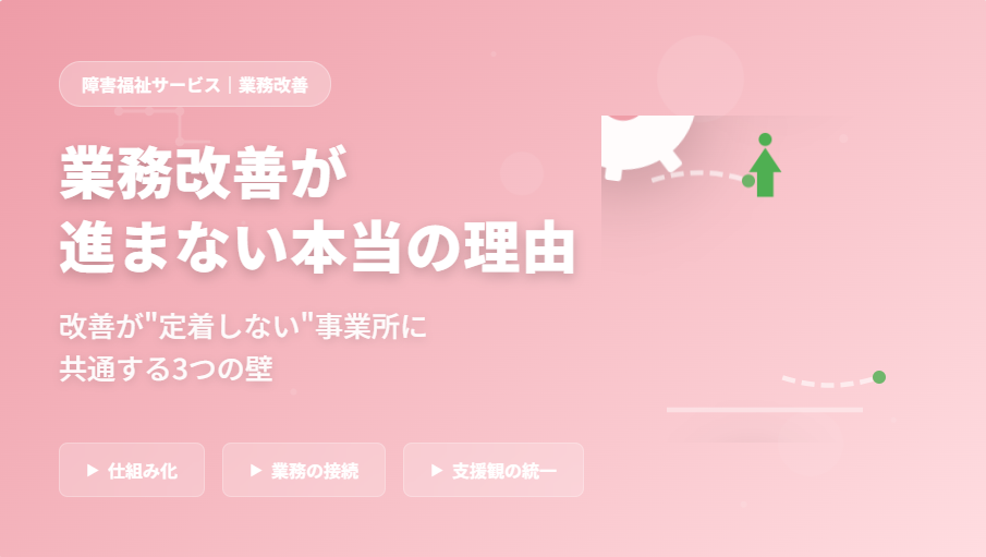 • 業務改善が進まない本当の理由|改善が“定着しない”事業所に共通する3つの壁